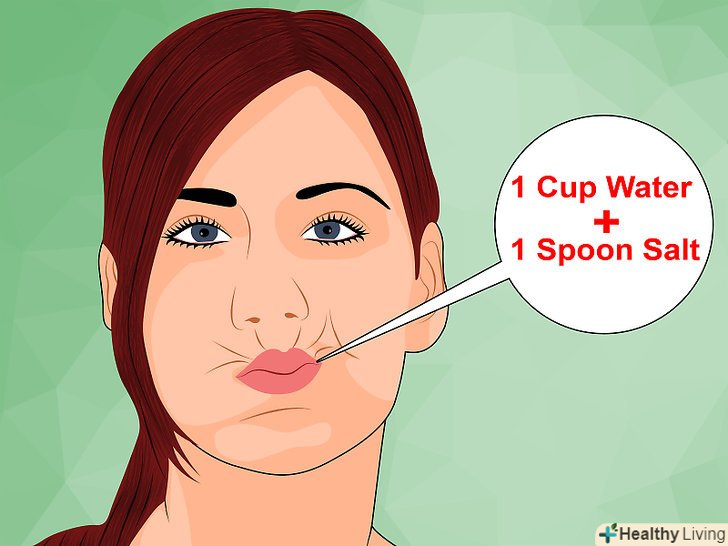 Полощіть рот.насипте чайну ложку (5 г) солі в склянку (240 мл) теплої води і розмішайте до повного розчинення. Обережно прополощіть рот цим розчином, а потім виплюньте. Хоча розчин не дуже допомагає при гострого болю в щелепі, викликаної ретинованим зубом, він може зняти поверхневий набряк і пошкодження тканин порожнини рота, що виникають після прорізання зуба мудрості через поверхню ясен.[5]