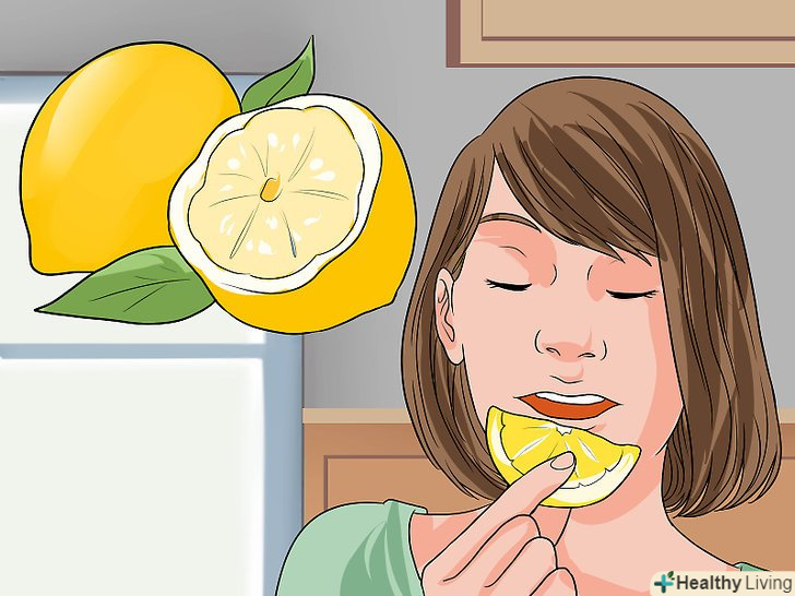 Покладіть цитрус на хворе місце.біль у каріозній порожнині можна вгамувати за допомогою фрукта з вашого холодильника. Лимони і Лайми здатні вгамувати біль завдяки своїй лимонній кислоті і вітаміну С, який має антибактеріальні властивості.[18][19]- Розріжте лимон або лайм на часточки. Потім вкусите часточку, щоб видавити з неї сік. Полийте соком хвору ясна або зуб і покладіть на них часточку цитруса.[20]