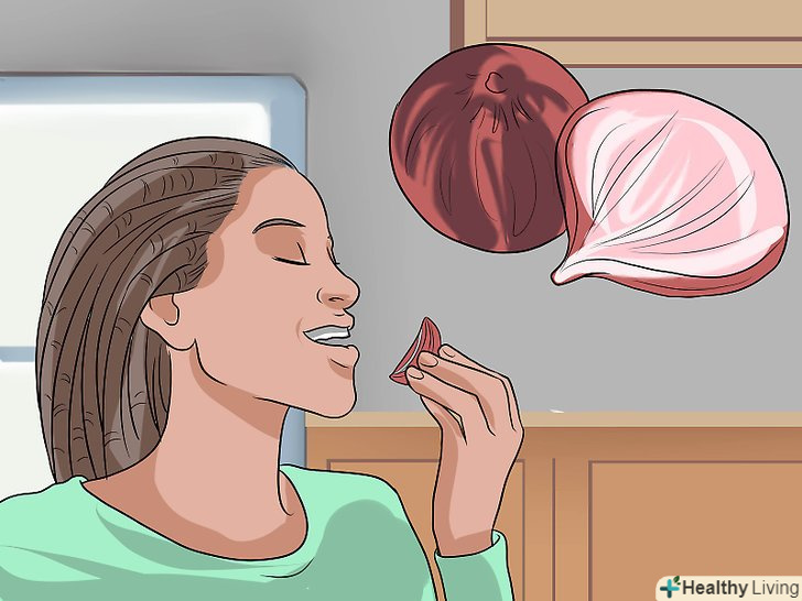 Пожуйте часник, цибулю або імбир.часник, цибуля і імбир відомі своїми антимікробними властивостями, які можуть вгамувати біль в ротовій порожнині. Покладіть невеликий шматочок часнику, цибулі або імбиру в рот, прямо на хворий зуб або ясна. Повільно відкусіть невелику частину, з якої потім виділиться сік. Цей сік полегшить біль, знеболивши ясна.[23]
