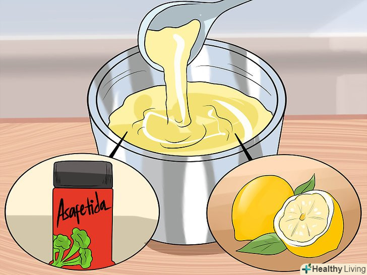 Спробуйте пасту з асафетиди. Асафетида-це рослина, відоме своїми антимікробними властивостями, яке часто застосовують в народній медицині Близького Сходу.[24] приготуйте з нього пасту, щоб вгамувати біль в зубах. Насипте в свіжий лимонний сік 1 грам порошку асафетіди. Використовуйте стільки соку, щоб отримати густу пасту, яку можна буде намазати на зуб. Нанесіть пасту на каріозну порожнину і навколо ясен. Залиште пасту приблизно на 5 хвилин.- Прополощіть рот водою, щоб змити пасту.