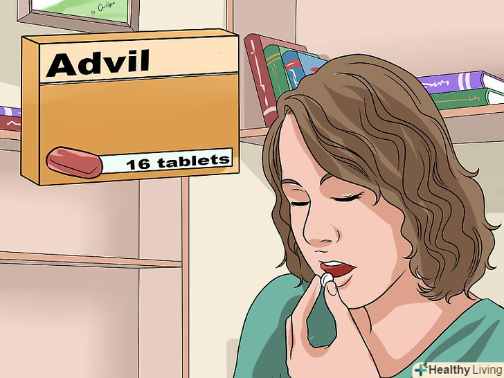 Приймайте безрецептурні ліки.якщо ваші зуби або ясна болять через карієс, прийом безрецептурних знеболюючих допоможе вгамувати біль. Прийміть ібупрофен (Ібупрофен-Дарниця), парацетамол (Еффералган), напроксен (Налгезин) або аспірин.[3]- Приймайте ліки відповідно до інструкції, зазначеної на упаковці.