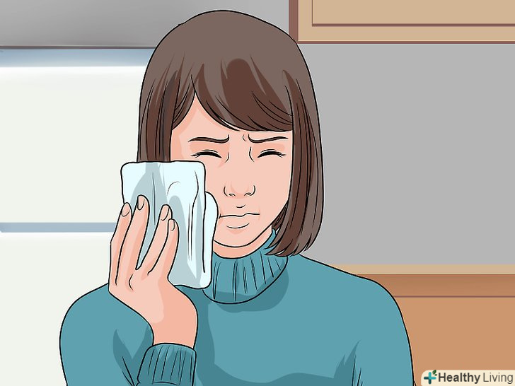 Прикладіть холодний компрес.Вгамуйте біль в ротовій порожнині з допомогу холодного компресу. Замотайте кілька кубиків льоду або подрібнений лід в рушник, повітряну кульку або в відрізаний палець не латексної рукавички, щоб зробити холодний компрес. Покладіть компрес на зуб, якщо він не чутливий до холоду.[8]- Холодний компрес можна покласти на обличчя, прямо над тим місцем, де болять зуби.