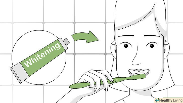 Чистіть зуби відбілюючою зубною пастою.це більш повільний і щадний спосіб відбілити зуби. Хоча такі пасти діють повільніше і слабкіше, ніж інші відбілюючі засоби, вони прекрасно підходять для того, щоб підтримувати білий колір зубів, досягнутий іншими способами.[32] ці зубні пасти не містять активних відбілюючих реагентів, їх дія полягає скоріше в поліровці емалі і освітленні за рахунок м'яких хімічних реакцій.[33]- Користуйтеся відбілюючою зубною пастою, схваленою Національною асоціацією стоматологів вашої країни або іншою професійною організацією зубних лікарів, щоб бути впевненим(ой) в її безпеці та ефективності.[34]