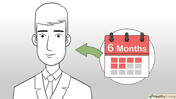 Двічі на рік відвідуйте стоматолога.для належного догляду за ротовою порожниною і профілактики захворювань відвідуйте стоматолога раз на півроку. Лікар порадить вам, як правильно доглядати за своїми зубами, і вчасно виявить можливі проблеми. Крім цього, при необхідності стоматолог або гігієніст проведуть глибоку чистку зубів. Професійна глибока чистка зубів допоможе освітлити їх, видалить наліт і зубний камінь, в результаті чого ваша посмішка стане білішою і без відбілювання.- Можливо, вам знадобиться позапланово відвідати стоматолога в тому випадку, якщо у вас кровоточать ясна, ви відчуваєте зубний біль або ваші зуби темніють. При появі подібних симптомів без зволікання запишіться на прийом до лікаря, щоб запобігти псуванню зубів на ранніх стадіях.