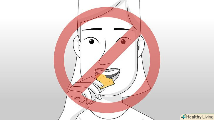 Неухильно дотримуйтесь інструкцій, прикладених до препарату.кожне засіб має свої особливості. Деякі препарати слід видаляти через кілька хвилин після нанесення, інші можна залишати на всю ніч. Щоб домогтися максимального ефекту, не пошкодивши при цьому зуби або м'які тканини, уважно вивчіть інструкцію. Ні в якому разі не залишайте засіб на зубах довше рекомендованого часу.[29]- Після використання відбілюючого засобу не вживайте їжу і напої з підвищеною кислотністю. Такі продукти можуть знизити відбілюючий ефект і привести до подразнення чутливої зубної емалі.[30]