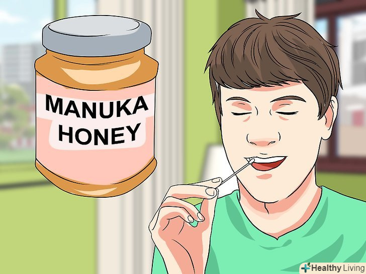 Використовуйте натуральний мед.[10] натуральний необроблений мед має антимікробну і загоює дію. Він зволожує ясна і утворює навколо них захисний шар. Якщо є можливість, використовуйте мед манука, лікувальні якості якого підтверджені науковими дослідженнями.[11]- Мед може виділяти перекис водню і тим самим вбивати бактерії шляхом їх дегідратації. Його використовують для лікування запалених ясен і виразок, а також при інших проблемах ротової порожнини.
