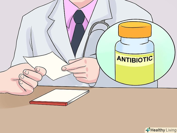 Приймайте антибіотики за рекомендацією стоматолога.після чищення зубів в разі досить серйозної інфекції лікар може призначити антибіотики. Це можуть бути антибактеріальні засоби для полоскання рота, гелі для місцевого застосування або пероральні антибіотики.[15]