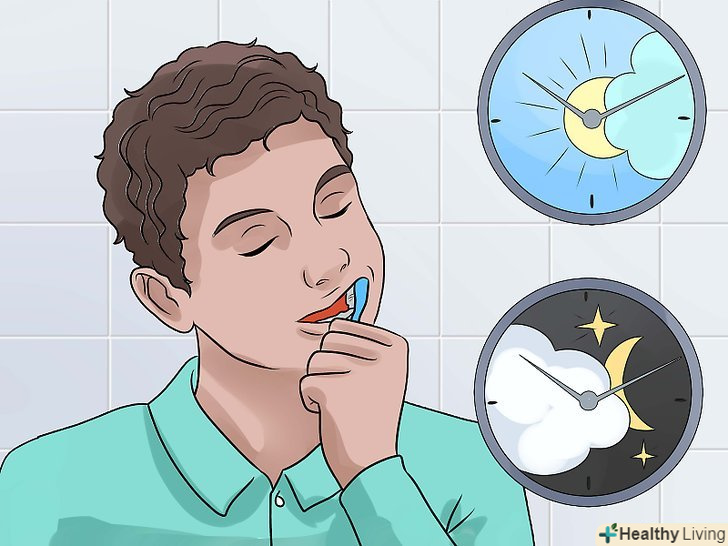 Чистіть зуби щонайменше двічі на день. [18] дослідження показали, що це допомагає запобігти гінгівіту. При правильному чищенні зубів ви не тільки видаляєте наліт з усіх ділянок (в тому числі між зубами), але і масажуєте ясна, що покращує локальний кровообіг.- Найкращим способом чищення зубів є модифікована техніка Басса.[19] розташовуйте зубну щітку таким чином, щоб щетина була орієнтована під кутом 45 градусів до лінії ясен. Це дозволить очистити зуби приблизно на 1 міліметр нижче лінії ясен. Здійснюйте щіткою невеликі коливальні і обертальні рухи, щоб видалити зубний наліт. Зробіть приблизно 20 рухів, а потім підніміться до верхньої поверхні зубів. Верхню поверхню очищайте поступальними рухами. Виконайте це з усіма зубами.