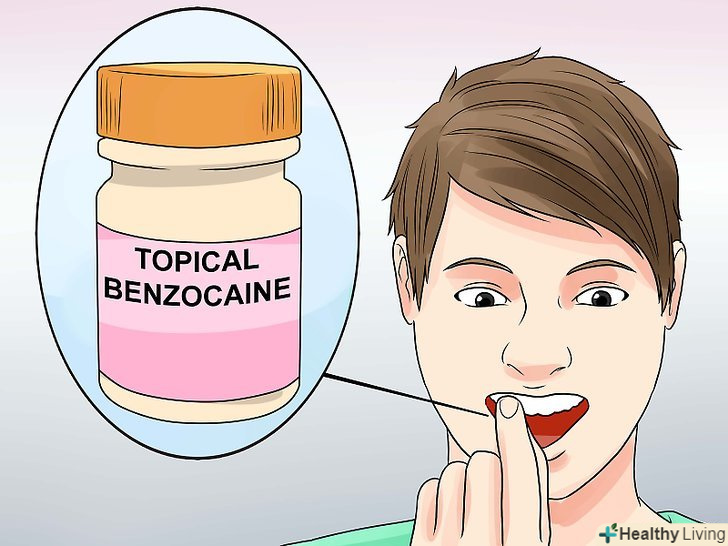Прикладайте до роздратованого ділянці анальгетик.бензокаїнова мазь для місцевого застосування (такі мазі використовують для того, щоб полегшити біль у маленьких дітей, коли у них прорізаються зуби) здатна тимчасово зняти біль. Цей метод особливо корисний при дуже сильній чутливості ясен, якщо застосовувати його перед тим, як поїсти або почистити зуби.[2]
