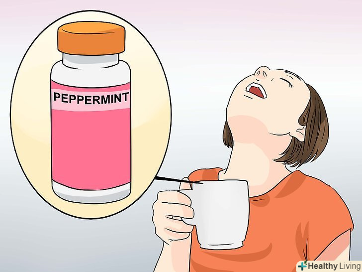 Використовуйте таблетки або капсули з перцевої м'яти. екстракт м'яти перцевої містить 0,1-1% масла, яке складається з ментолу і ментону. Ці масла діють як анальгетики і знімають біль при нанесенні на запалені ділянки, наприклад на ясна.[6]- Розчиніть 3-6 грамів м'ятних таблеток або капсул в 10 мілілітрах дистильованої води. Полощіть рот один раз в день.