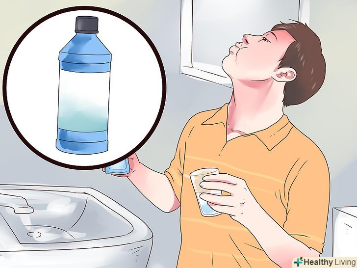 Полощіть рот теплим розчином солі, щоб зняти набряк.застосування теплої води з сіллю корисно для лікування будь-яких проблем в ротовій порожнині, викликаних інфекцією. Це відбувається тому що сіль витягує рідину з інфікованої ділянки, знімаючи напругу в м'яких тканинах і зменшуючи біль.- Для приготування сольового розчину, візьміть повний стакан теплої води і додайте одну чайну ложку звичайної кухонної солі. Ретельно перемішайте, щоб повністю розчинити сіль. Переконайтеся, що вода тепла, а не гаряча, ви ж не хочете обпекти собі рот.