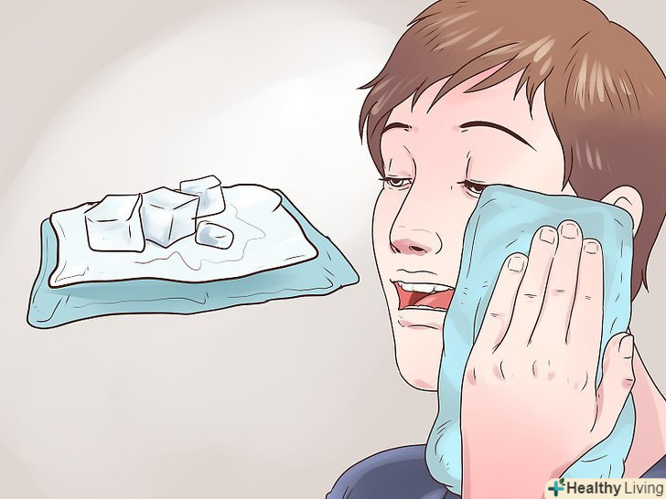 Застосуйте холодний компрес.загорніть кубик льоду в чисту ганчірочку або тканину і помістіть її безпосередньо на зуб або на щоку, прилеглу до хворого зуба, приблизно на 10 хвилин.- Холод дає відчуття оніміння, що допомагає полегшити біль. Замість кубика льоду, можете використовувати міхур з льодом або пакет з замороженими овочами.
