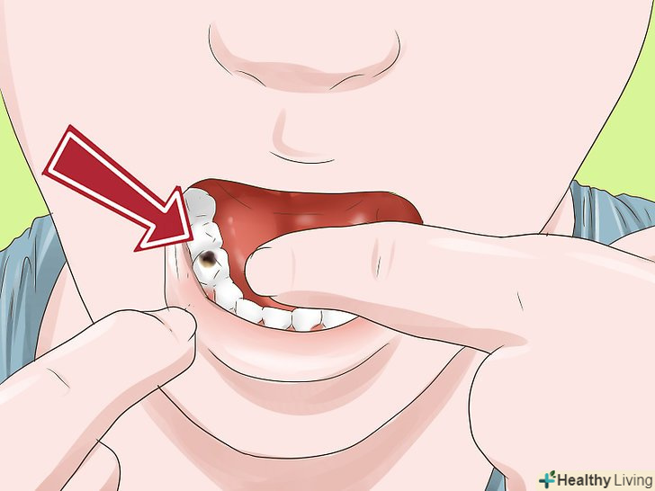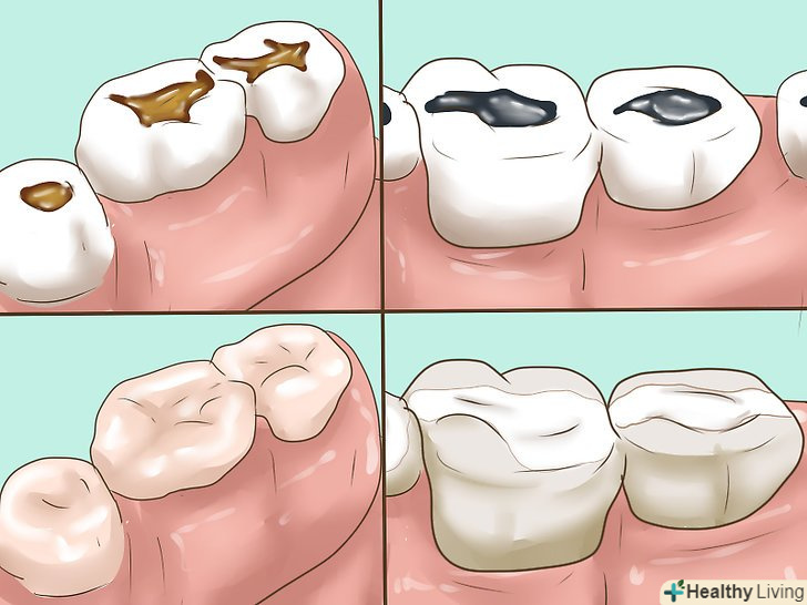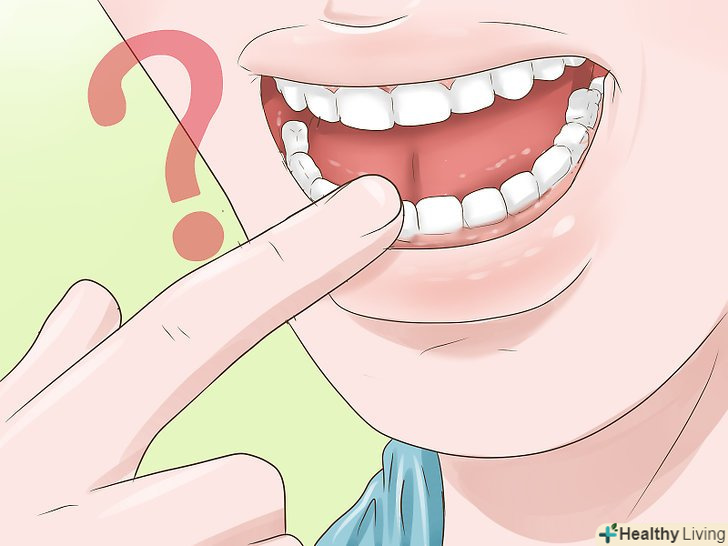 Обмацайте поверхню зуба.здоровий зуб повинен бути чистим і гладким. Можливо, ваш зуб ніколи не стає гладким навіть після чищення щіткою і ниткою. Це може бути ознакою руйнування пломби.[14]- Поспостерігайте за зубом. Зверніть увагу на те, чи впливає щось на гладкість його поверхні. Якщо зуб не стане гладким, повідомте про це лікаря.