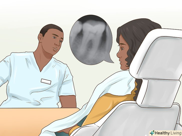Пройдіть додаткове обстеження.іноді пломба виглядає цілою, але її все одно потрібно міняти. Так буває, якщо в пломбі утворилася тріщина або вона починає розпадатися. Через це може з'явитися карієс. Можливо, лікар захоче перевірити стан зубів зсередини. Якщо лікар підозрює, що пломбу потрібно замінити, або точно знає це, вам буде потрібно зробити знімок зуба. Це дозволить стоматолога визначити, яке лікування вам показано.[24]- Знайте, що Вам також може знадобитися прицільний перипікальний знімок, на якому буде видно корінь зуба.[25]