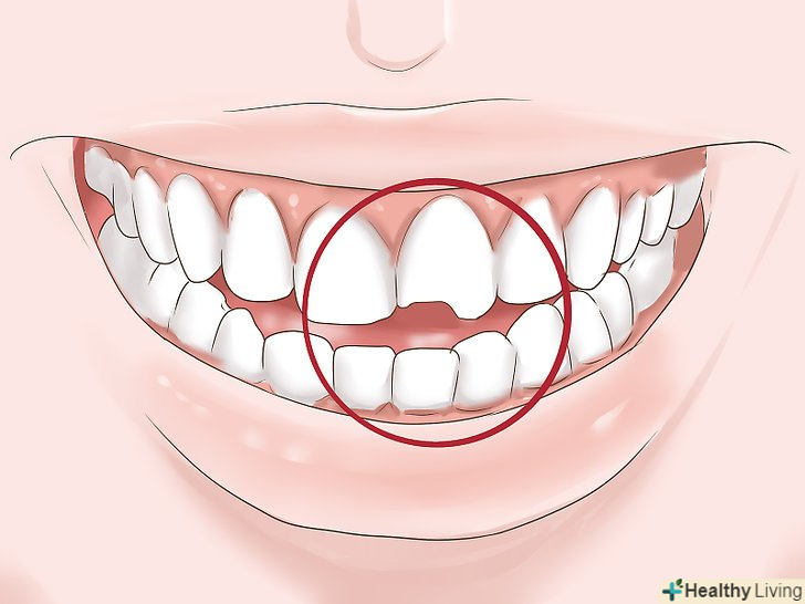 Пошукайте відколи і тріщини на зубах.навіть якщо ви не бачите проблем з пломбою, тріщина або скол на зубі може вказувати на те, що пломбу потрібно замінити. Якщо у вас є симптоми, але ви не бачите пошкоджень на пломбі, перевірте стан сусідніх зубів. Вони можуть бути пошкоджені, і їх лікуванням повинен займатися лікар.[16]- Обмацайте зуби кінчиком язика - так можна виявити гострі краї і порожнини. Якщо їжа застряє в зубі, пломбу потрібно замінити.