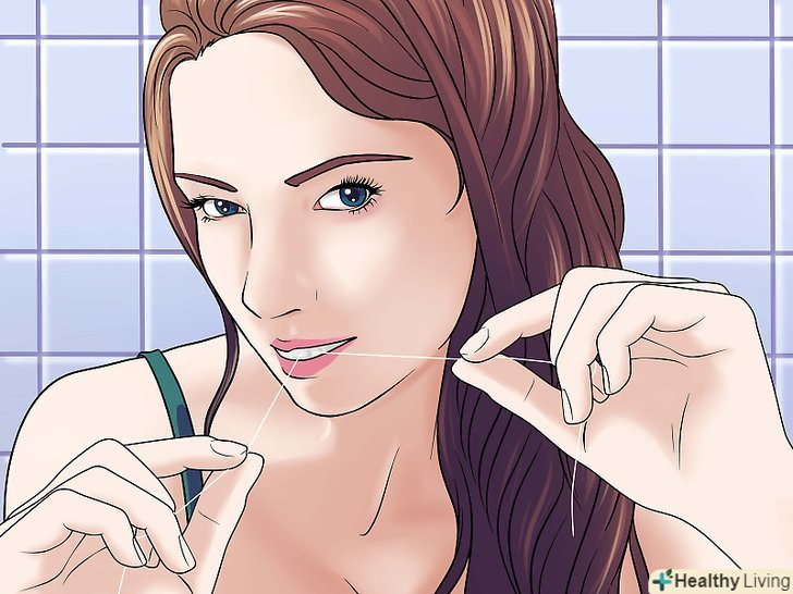 Чистіть зуби ниткою як мінімум раз на день. Робити це потрібно обов'язково. Стоматологи рекомендують чистити зуби ниткою перед сном, оскільки це дозволяє видалити залишки їжі, які могли застрягти між зубами або на них.[11]- Найчастіше люди чистять зуби ниткою після того, як почистили їх щіткою, проте краще робити це в зворотному порядку. Це дозволяє видалити їжу між зубів і з ясен, після чого вам буде простіше почистити ці ділянки щіткою.[12]