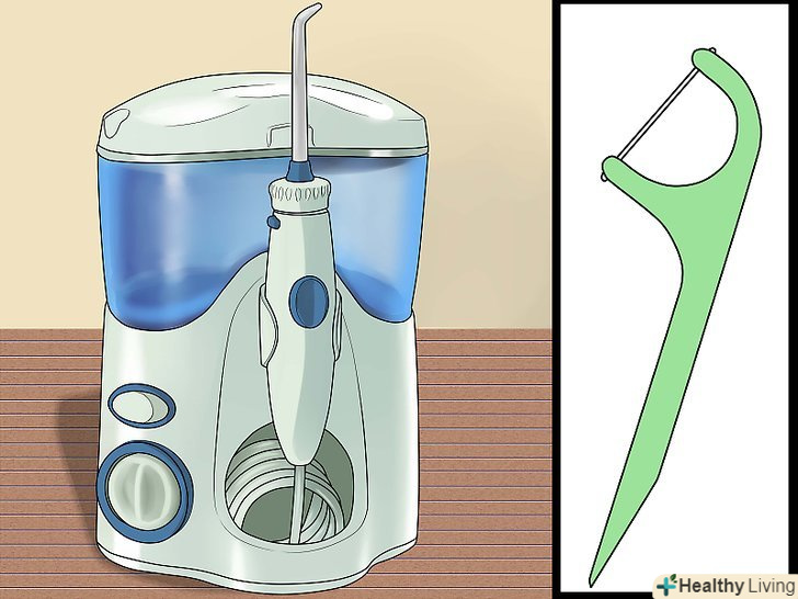Спробуйте замінити нитку чимось іншим, якщо вона вам не подобається.якщо вам важко чистити зуби ниткою, є й інші способи прибрати залишки їжі. Є спеціальні зубні нитки, закріплені на ручці, і вам не доведеться самому розмотувати нитку. Зручна ручка дозволяє обробити всі ділянки. Можна також користуватися іригаторами. Це спеціальні пристрої, які подають струмінь води і очищають проміжки між зубами.[15]