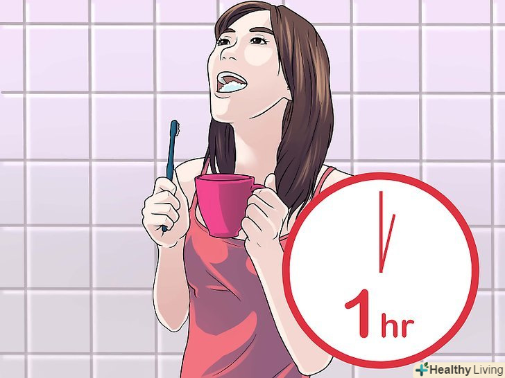 Зуби слід чистити як мінімум через годину після їжі.під час їжі емаль на зубах тимчасово розм'якшується. Якщо почистити зуби відразу після їжі, можна зіпсувати емаль. Краще почекати як мінімум годину. Це дозволить слині в роті нейтралізувати кислоту і повернути емаль до її нормального стану.[2]