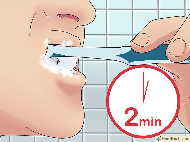 Чистіть зуби протягом двох хвилин.кожен раз слід витрачати на чистку зубів не менше двох хвилин. Розподіліть час рівномірно між усіма зубами. Можна використовувати таймер або секундомір.[8]