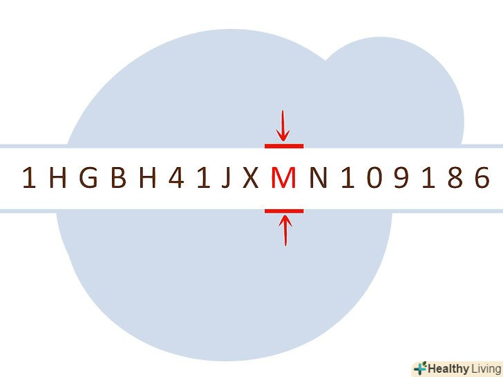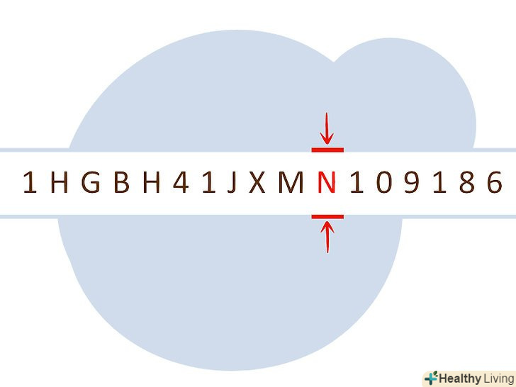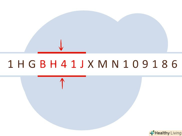 Скористайтеся іншими методами для самостійної розшифровки.якщо вже ви хочете повеселитися і розшифрувати код самостійно (або якщо у вашої машини нестандартний VIN-код), то читайте далі. По-крайней мере, ви без проблем з'ясуєте, де і коли була зібрана ваша машина, а ось всі інші методи вже можуть бути складніше.- У Північній Америці ці коди повністю стандартизовані. Велика частина великих виробників автомобілів в інших частинах світу також дотримується таких стандартів, хоча вони можуть додавати і 9-й, а то і 10-й символ з тією чи іншою метою. У США, наприклад, 9-й символ може використовуватися як "чек-сума" -для перевірки, чи справжній VIN, а 10 — й-для позначення року виробництва Машини.