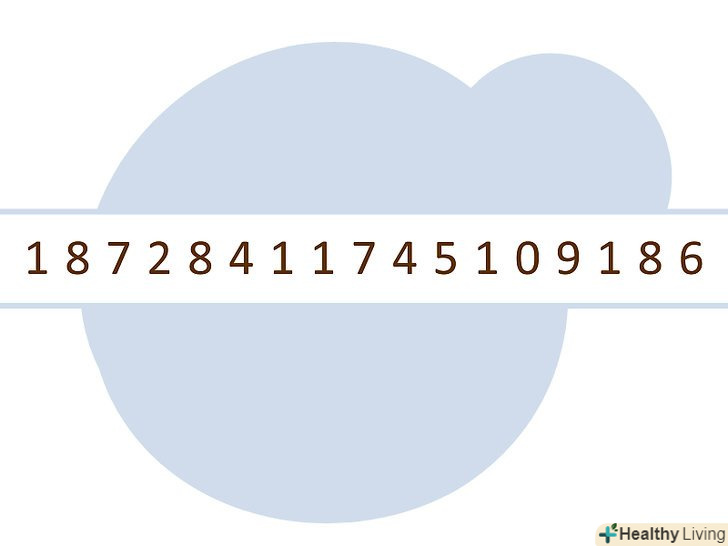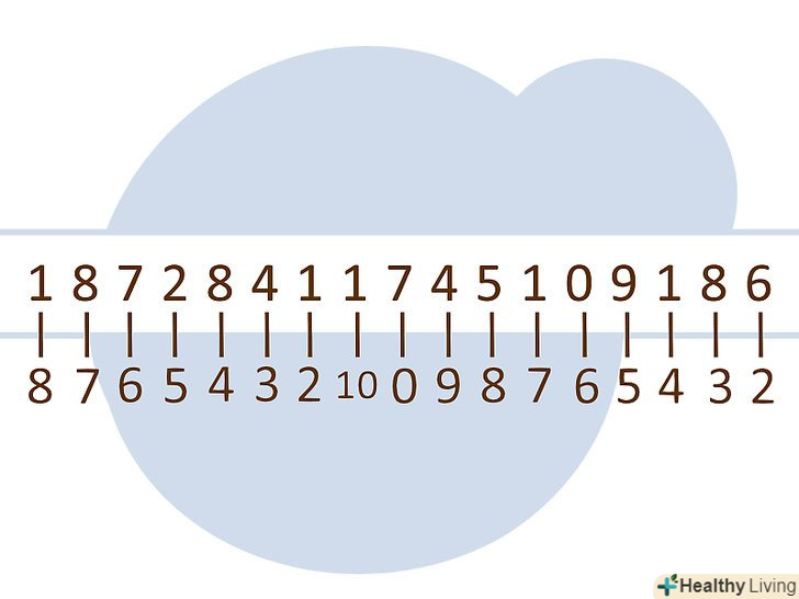 Тепер під кодом запишіть наступну послідовність, намагаючись при цьому, щоб цифри йшли рівно один під одним: 8 7 6 5 4 3 2 10 0 9 8 7 6 5 4 3 2. Перепишіть все так, як зазначено тут. Врахуйте, що "10" — це одне число, а не два, так що пишіть десятку тільки під однією цифрою.