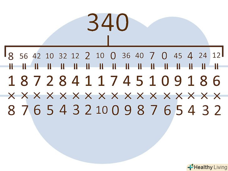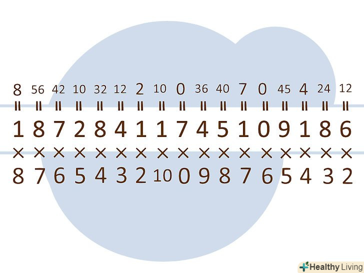 - Помножте 4 x 8 (перші цифри в рядках), вийде 32. Помножте 2 x 7 (другі цифри), вийде 14. Продовжуйте, поки не побачите наступний ряд: 32;14;18;10;8;18;6;40;0;18;48;21;12;0;0;0;2.
