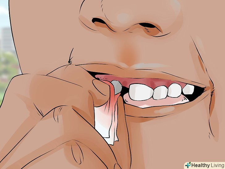 Зупиніть кровотечу.навіть якщо зуб хитався дуже сильно, ранка на його колишньому місці буде трохи кровоточити. Візьміть нову стерильну марлеву серветку і притисніть її пальцем до ранки. Попросіть дитину прикусити серветку хвилин на десять. Це дозволить швидко зупинити кровотечу і сприятиме швидкому загоєнню ранки. [8]