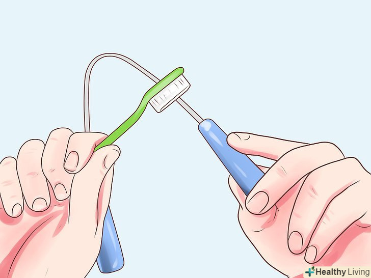 Виберіть зубну щітку комбіновану зі скребком для язика.якщо у вас загострений блювотний рефлекс, то зробіть вибір на користь такої зубної щітки зі скребком. Такий вид скребка вже. ніж стандартний, некомбінований, що робить його оптимальним для людей з загостреним блювотним рефлексом.- Виберіть Y-подібний скребок для мови.Скребок для язика у вигляді одного леза очищає мову швидше, ніж скребок і зубна щітка два в одному. Він має гладкі краї і контури, які підходять для чищення мови. Якщо ви хочете придбати більш ефективний інструмент, то зупиніть свій вибір на такому скребку.