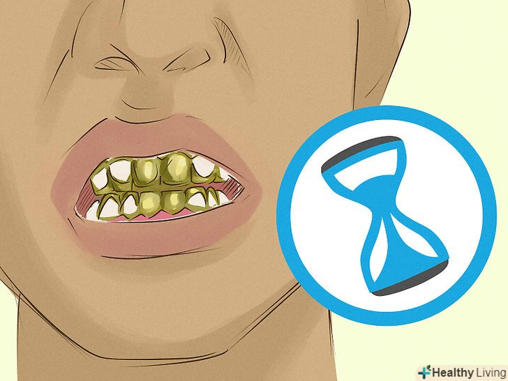 Не носіть накладку постійно.Накладки-це знімні золоті пластини, які закріплюють поверх зубів. Накладку не можна носити постійно. Під накладку потрапляють шматочки їжі і бактерії, тому якщо не знімати її тривалий час, то це може привести до травм ясен і руйнування зубів.[12]