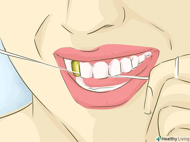 Регулярно використовуйтеЗубну нитку.золоті зуби потрібно чистити ниткою точно так же, як і природні зуби. Хоча золоті зуби дозволяють знизити знос сусідніх зубів і уповільнити розвиток карієсу в накритому зубі, вони також вимагають догляду. Використовуючи зубну нитку, не забувайте про золоті зуби.[2]- Зуби слід чистити ниткою не рідше одного разу на день.[3]
