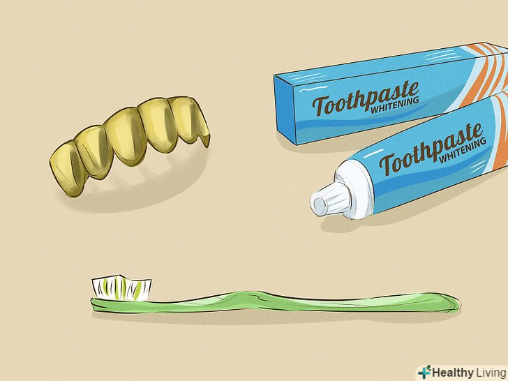 Не використовуйте засоби для очищення золотих ювелірних виробів.може здаватися, що чистити золоті зуби або коронки засобом для ювелірних виробів — це хороша ідея, але все зовсім не так. Такі засоби отруйні при ковтанні. Ніколи не чистіть золоті зуби подібними засобами.[9]- Також ніколи не використовуйте для зубів поліроль для золота.