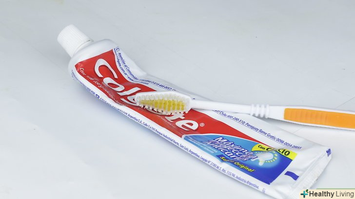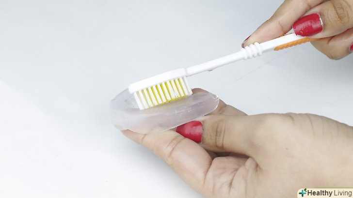 Вилийте на щітку трохи теплуватої води, щоб спінити миючий засіб.акуратно протріть щіткою капу або знімний ретейнер. Особливу увагу приділіть скупченням бруду і нальоту.