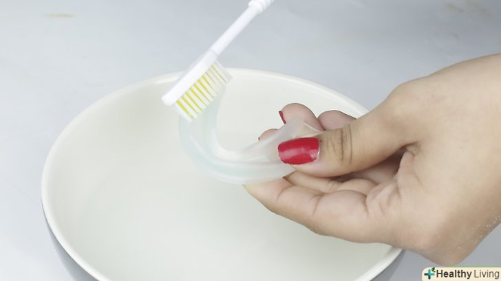 Мийте капу раз в день.так на ній не будуть накопичуватися ні бруд, ні наліт, і капа прослужить довше. Капу можна щодня промивати рідиною для полоскання рота і раз на тиждень проводити генеральне очищення.[7]- Вам також варто ретельно стежити за гігієною порожнини рота, щоб знизити кількість нальоту, так що не забувайте чистити зуби два рази в день.