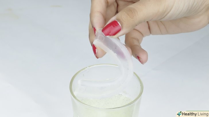 Ніколи не промивайте капу або ретейнер окропом.окріп може деформувати пластик або розплавити його. Промивайте капу тільки теплою або холодною (але ні в якому разі не гарячою) водою.[10]