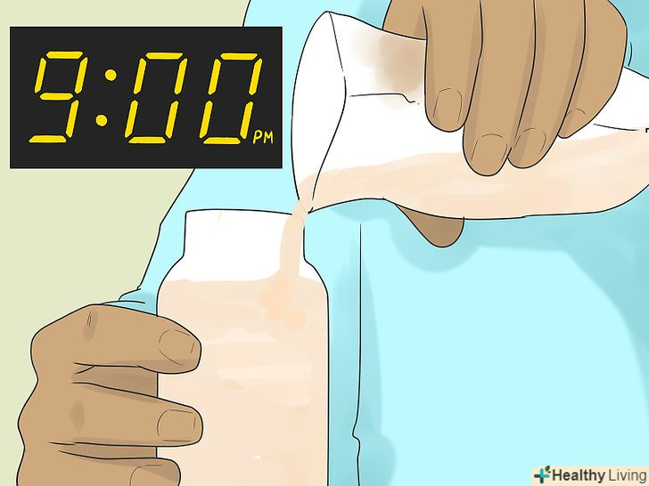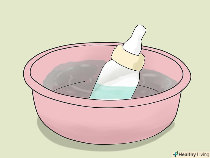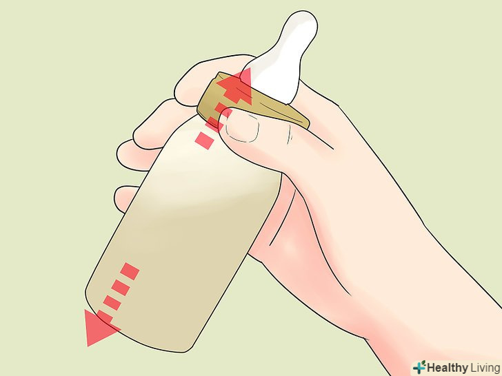Підігрійте молоко в теплій воді (не обов'язково).якщо ваша дитина вважає за краще пити тепле молоко, занурте закриту ємність з молоком в миску теплої води і почекайте, поки молоко не придбає відповідну для дитини температуру. Ніколи не підігрівайте грудне молоко в мікрохвильовій печі, на плиті або в окропі. Через це молоко може зіпсуватися, крім того, воно може обпалити малюка![10]