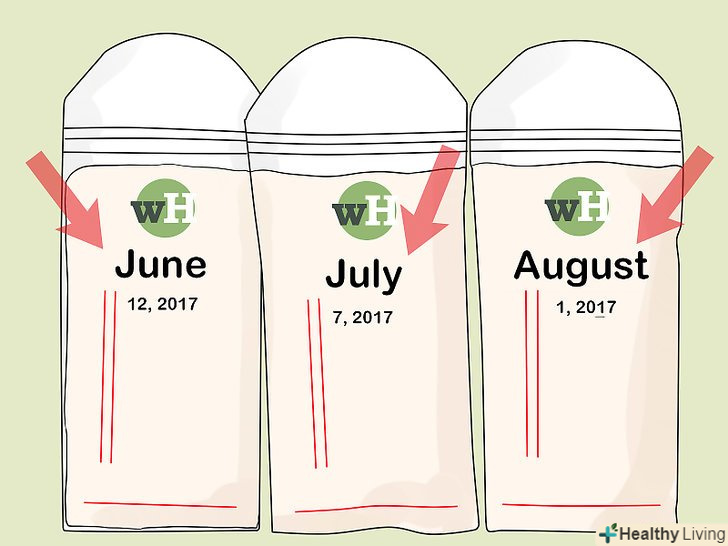Вийміть ємність з найстарішим молоком з морозилки.перевірте дату, щоб переконатися в тому, що молоко зберігалося менше чотирьох місяців. Також подивіться, чи не загубилися в глибині морозилки ємності з більш старими датами![5]