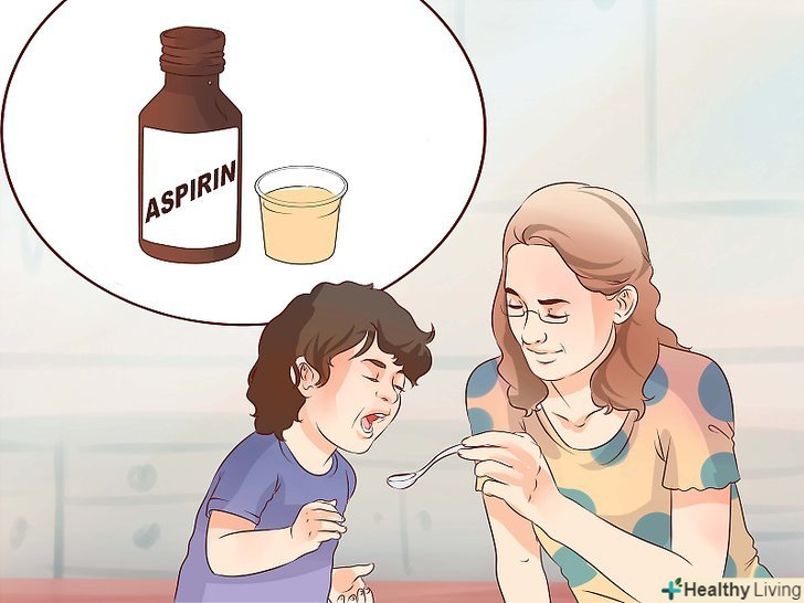 Знизьте біль і температуру за допомогою медикаментів.препарати, що відпускаються без рецепта, допомагають збити температуру, полегшити головний біль, біль у горлі і суглобах. Однак пам'ятайте про те, що дітям і підліткам не можна давати медикаменти, до складу яких входить аспірин, оскільки він може викликати синдром Рея.[7]- В якості безпечної заміни аспірину можна використовувати ацетамінофен (Тайленол) або ібупрофен (Адвіл, Мотрин ІБ). Проконсультуйтеся з педіатром щодо того, які препарати краще давати дитині.