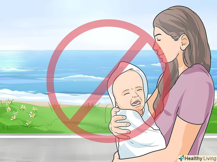 Оберігайте дитину від спеки.якщо дитина буде перебувати в прохолодному місці, втрата рідини в його організмі буде мінімальною. Високі температури, як було виявлено, пов'язані з синдромом раптової дитячої смерті (СРДС). Дослідження показали, що немовлята, які піддаються впливу температур близько 29 °C, мають в два рази вищий ризик СРДС, ніж ті, які знаходяться в умовах з температурою близько 20 °C.[9]- Слідкуйте за температурою повітря в кімнаті дитини за допомогою термометра.