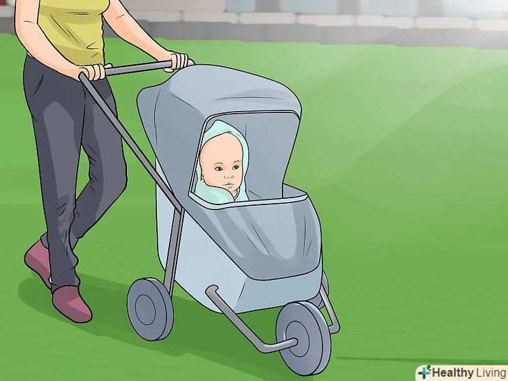 Якщо дитина спить на відкритому повітрі, стежте за тим, щоб він був в тіні. [11] це дозволяє не тільки уникнути перегріву, але і захистити шкіру дитини від сонця. Якщо малюк спить в колясці, поставте коляску в тінь. Опустіть козирок коляски, якщо вам складно знайти тінь (наприклад, коли ви знаходитесь на пляжі). Якщо ви їдете на автомобілі, подбайте про те, щоб сонце не світило на дитину-опустіть або встановіть спеціальну шторку.