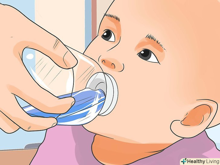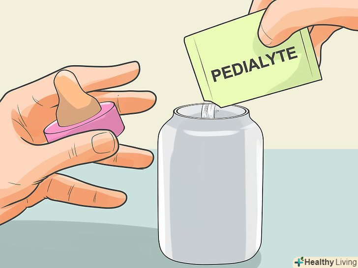 Спробуйте додатково давати дитині воду, якщо він старше чотирьох місяців.якщо дитина ще не їсть тверду їжу, не давайте йому більше 100-120 мл води. Якщо дитина вже почав їсти тверду їжу, можете давати йому більше води. Спробуйте додавати воду в соки, якщо дитина відмовляється від води, але любить пити сік.[6] ви також можете дати дитині розчин електролітів, наприклад «Регідрон» або «Гідровіт».