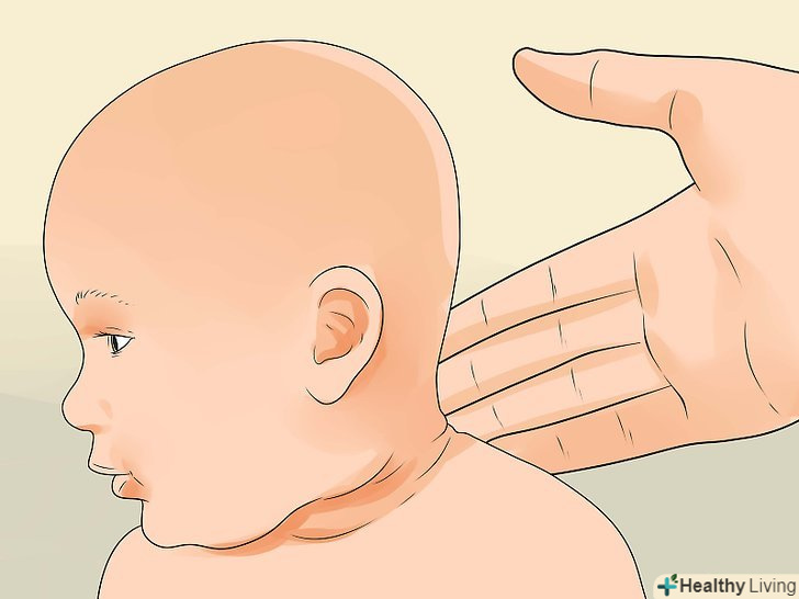 Перевірте, чи не перегрівся дитина.для цього акуратно доторкніться до його потилиці і до задньої сторони шиї. Зазвичай це найкращий спосіб перевірити температуру дитини. Якщо шкіра гаряча, і ви відчуваєте, що дитина спітніла, то це означає, що малюкові жарко. Перегрів може призводити до зневоднення.[8]