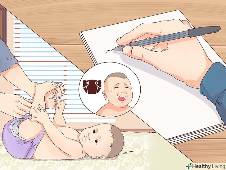 Поспостерігайте за своєю дитиною в процесі дефекації.ознакою запору у дитини є тривала відсутність дефекації. Якщо у вас є сумніви з цього приводу, постарайтеся згадати, коли ваша дитина останній раз випорожнювався.[2]- Якщо ви переживаєте, що у малюка може з'явитися запор, робіть в блокноті позначку кожен раз, коли дитина випорожнюється.