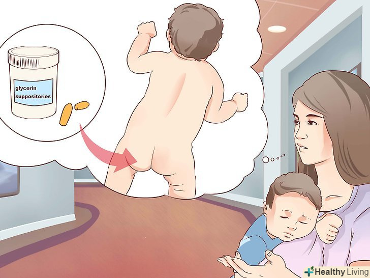 Використовуйте гліцеринові свічки.якщо зміни в режимі харчування не принесли належного ефекту, можна спробувати скористатися спеціальними гліцериновими свічками. Таку свічку потрібно акуратно і м'яко ввести дитині в задній прохід. Через якийсь час вона розтане і буде виконувати роль лубриканта. Ці свічки призначені для використання в екстрених випадках, тому перед їх використанням потрібно проконсультуватися з лікарем-педіатром.[5]
