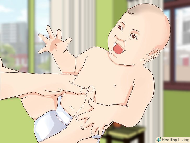 СпробуйтеЗробити дитині масаж .акуратними круговими рухами масажуйте дитині животик в області пупка. Таким чином ви допоможете йому розслабитися і полегшите процес дефекації.- Покладіть малюка на спинку і допоможіть йому виконати вправу «велосипед» ніжками — можливо, це теж допоможе.
