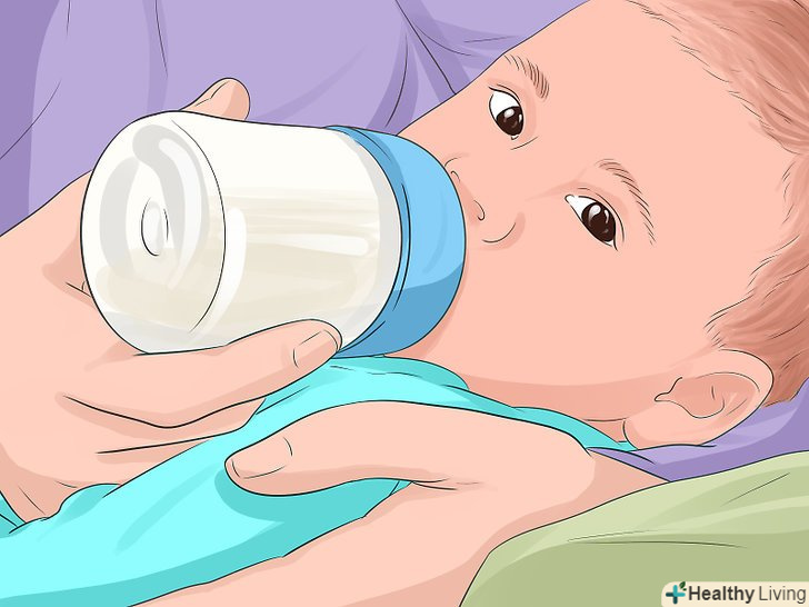 Годуйте дитину частіше.часте годування допоможе малюкові набирати вагу і розвиватися, що також сприяє розвитку печінки. Це вірно як для грудного вигодовування, так і штучного. В ідеалі новонароджені повинні їсти принаймні 8-12 разів на день протягом перших кількох днів, особливо якщо є ймовірність розвитку жовтяниці.[7]- Якщо ви годуєте грудьми, то часті годування протягом перших кількох днів життя (від 8 до 12 разів на день) допоможуть викликати приплив молока і зробити його стабільним.