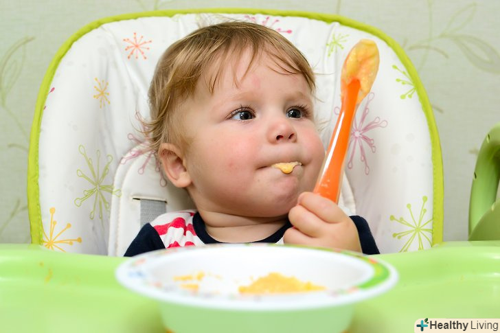 Проявіть терпіння.він не відразу зможе нормально їсти з ложки. Не турбуйтеся, якщо дитина не справляється з їжею. Йому знадобиться час.