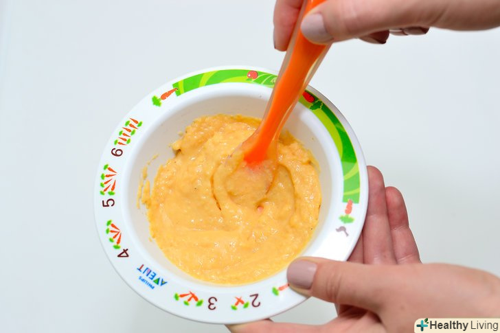 Приготуйте кашу, слідуючи інструкціям на упаковці. Консистенція каші повинна бути рідкою. Дитина ніколи до цього не їв тверду їжу, тому добре перемішайте кашу і зробіть її пожиже.