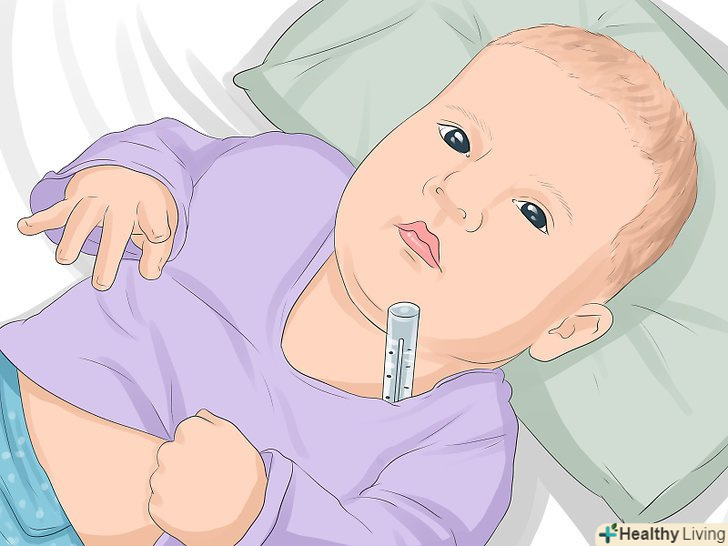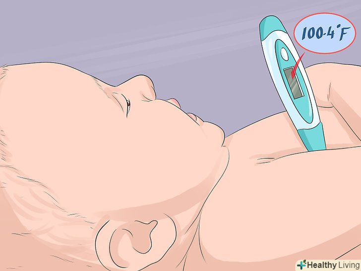 Зверніть увагу на підвищення температури тіла.більшість педіатрів сходиться на думці, що підвищена температура – сама по собі, без додаткових симптомів – ще не причина для паніки. Зрештою, це природна реакція організму, яка допомагає імунній системі боротися з інфекцією. Однак будьте пильні, щоб не пропустити інші симптоми хвороби, які вимагають термінового звернення до лікаря. Крім того, краще відразу звернутися за медичною допомогою, якщо справа стосується дітей молодше одного року, а також малюків, у яких виникають фебрильні судоми при підвищенні температури. [2]- Новонароджені ( до трьох місяців) - особливий випадок. Якщо у новонародженого температура 38°C і вище, терміново викличте лікаря або зверніться за медичною допомогою.
