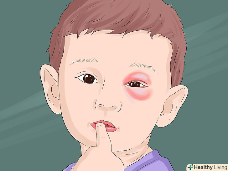 Порізи і кровотечі.кожна дитина може подряпатися або порізатися, і в більшості випадків такі дрібні рани можна обробити вдома за допомогою мила, води і чистих бинтів. У разі серйозних ран, що супроводжуються рясною кровотечею, здоров'я, а іноді і життя дитини залежать від того, як швидко йому нададуть лікарську допомогу. Якщо ж рана не виглядає дуже небезпечною, але все ж відрізняється від звичайної садна або порізу, батькам потрібно прийняти рішення, чи варто звернутися за медичною допомогою і наскільки терміново потрібно це зробити.[6]- Порізи і рани. Викличте швидку допомогу або самостійно відвезіть дитину в найближчий травмпункт, якщо рана занадто глибока, її поверхня занадто велика для перев'язки, а також якщо кровотеча не зупиняється після п'ятнадцяти хвилин навіть при тиску на рану. Медична допомога необхідна, якщо краї рани рвані або розходяться або в рану потрапила бруд. Завжди звертайтеся за допомогою, якщо у дитини велика або глибока рана на обличчі.