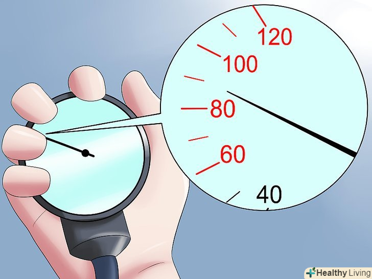 Накачайте повітря в манжету.переконайтеся, що спусковий клапан, розташований біля груші тонометра, повністю закритий. Коли ви будете нагнітати повітря в манжету, швидко стискаючи грушу, на шкалі буде відображатися підвищення тиску.- Нагнітайте повітря до тих пір, поки не досягнете показників, які вище типового тиску для віку вашої дитини. Для дуже маленьких дітей це 140 мм. рт.СТ., для дошкільнят і молодших школярів - 150-160 мм. рт. ст. і 160-170 - для підлітків.